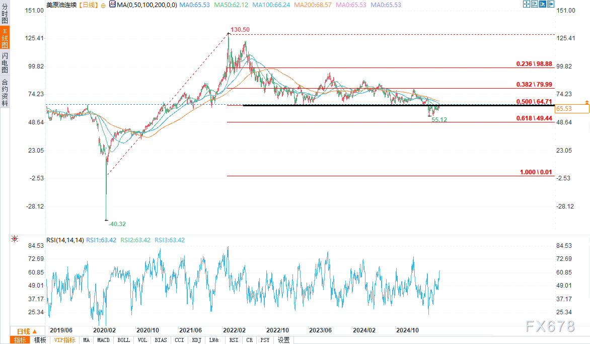 原油期货昨日收于65.38美元,涨幅0.94%。盘中高点达到65.43美元,略高于收盘价。这一温和但意义重大的涨幅反映出,在近期盘整后,看涨情绪出现反弹。