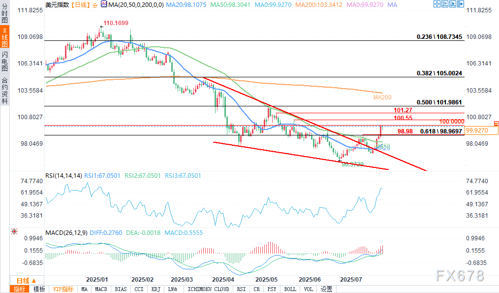 美元指数盘中接近100的新高点,这给多头们提供了信心,接下来几天的时间尤为重要。