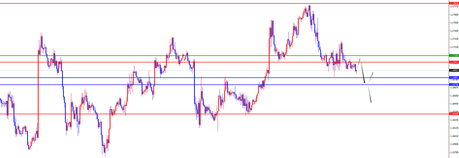 欧美1.1700-10区间空,防守40点,目标1.1680(破位后看1.1630)